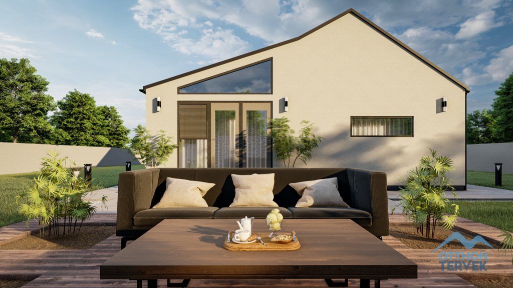 Az épület nem tagolt, egyszerű formavilágú, viszont a külső megjelenést nagyon feldobja a háromszög ablak megoldás a nagy belmagasságú nappali miatt. Az épület külső színvilága a letisztult formát kiemeli.