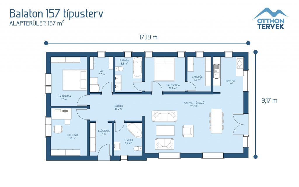 A Balaton 157 m2-es típustervünk természetesen módosítható az egyedig igények figyelembevételével.