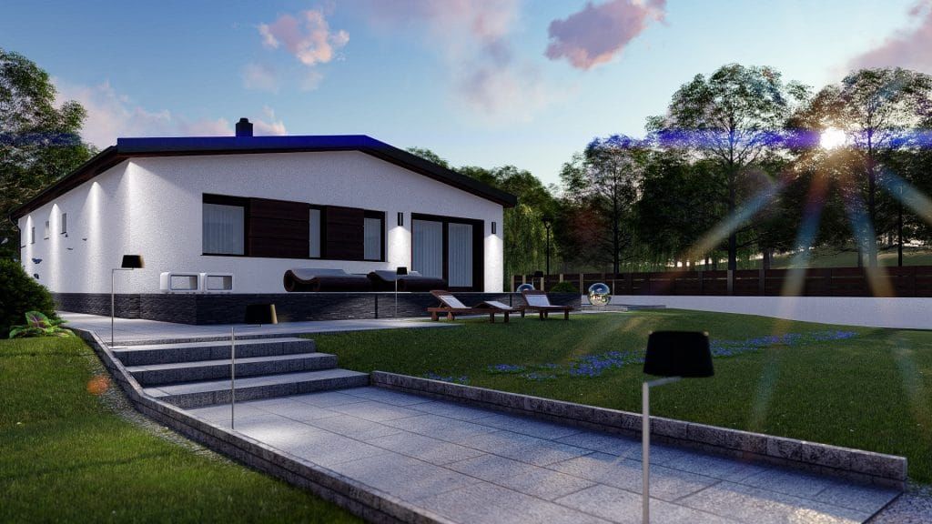 Mór 169 m²-es családi ház típustervünk nettó 142 m2 lakóterületet kínál jövőbeni tulajdonosainak, ami 5 szobát és 2 fürdőszobát foglal magába.