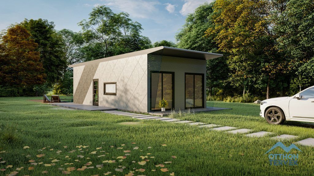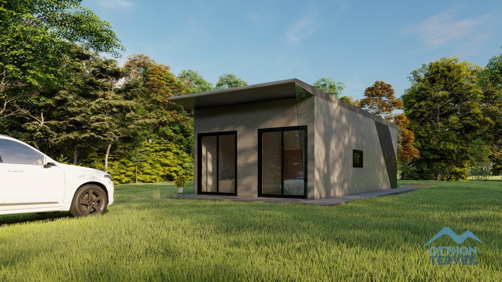 Az épület alapozás nélkül kivitelezhető, mert egy önhordó alvázszerkezet készül, melyre felépül a modern moduláris családi ház. Ezt az épületet több moduláris elemből tovább fejleszthetjük. Tehát bontás, roncsolás nélkül lehet tovább építeni a családi házunkat és ami a legjobb, hogy a kertet sem tesszük tönkre, mert minden a ház minden eleme a házgyárból származik és nem kell alapozást sem készíteni, a kertet, udvart nem kell tönkretenni.