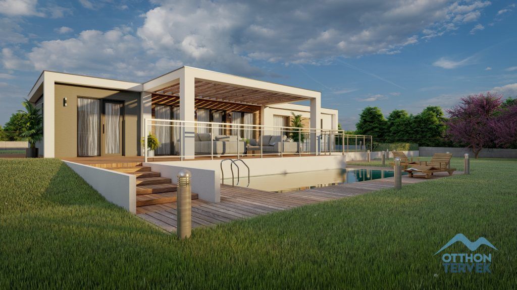 Ingyenes regisztrációA Keszthely családi ház típusterv bruttó 118 m² -es családi ház, mely egy 2013-ban cégünk által felépített modern ház lapostetős verziója.