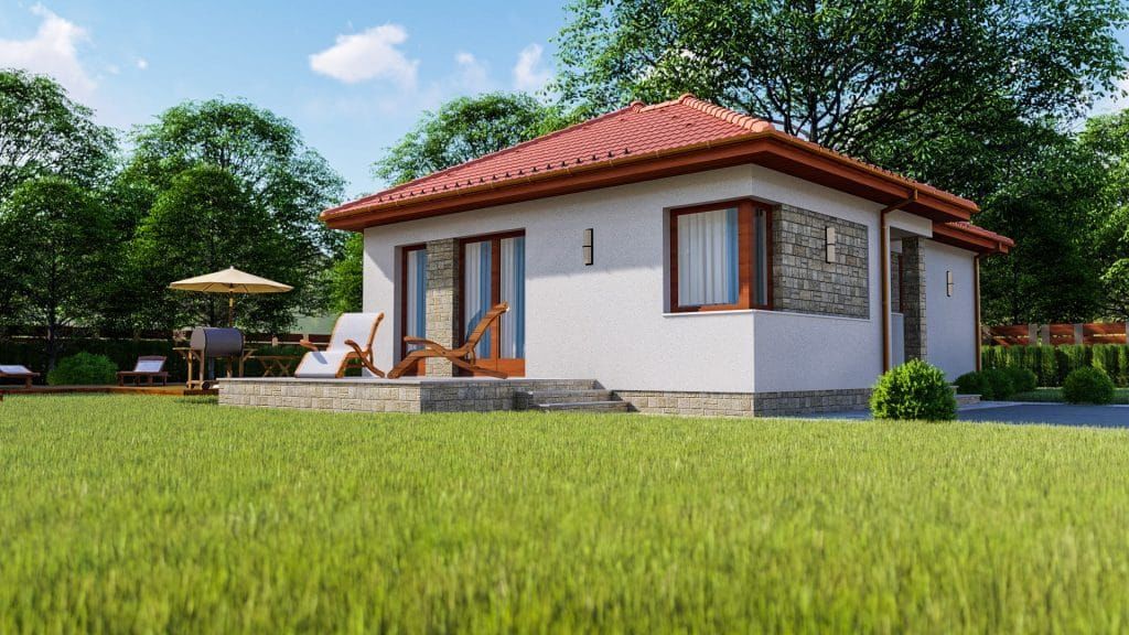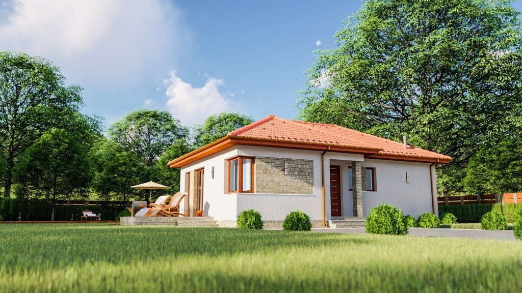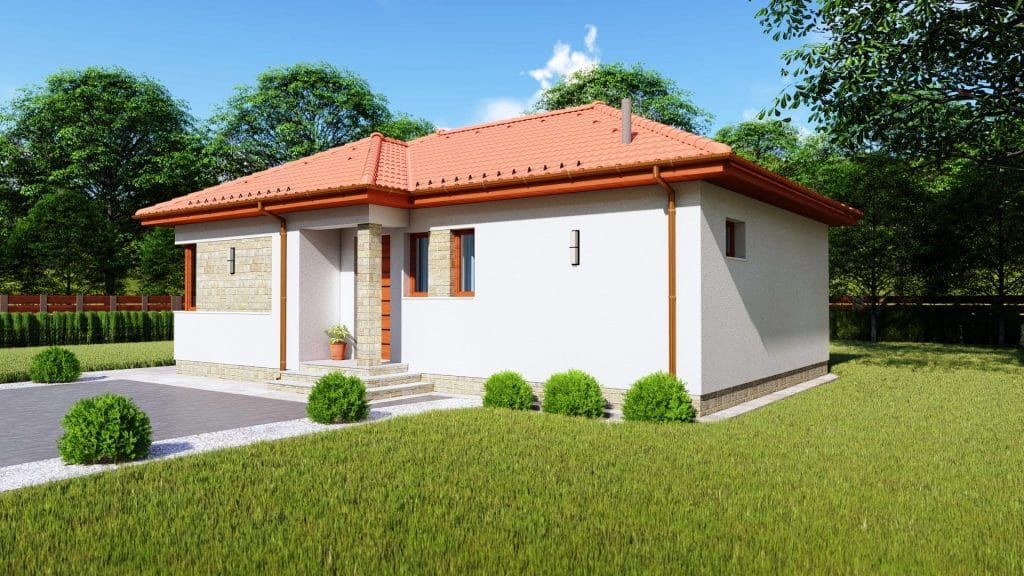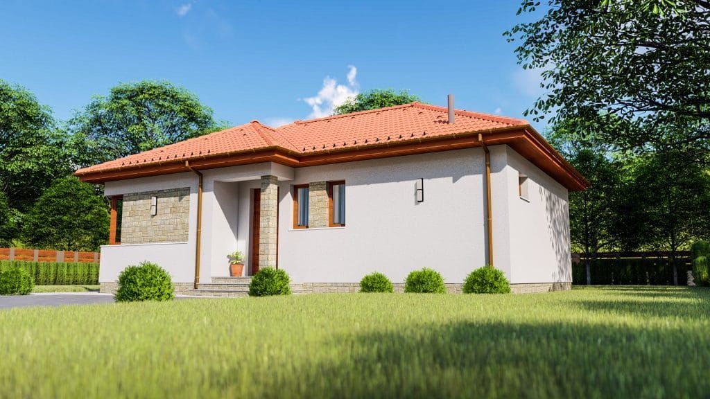 Kiskundorozsma 95 m²-es családi ház típusterv háztervünk nettó 75 m2 lakóterületet kínál jövőbeni tulajdonosainak, ami 3 szobát és 1 fürdőszobát foglal magába. Az MD-075 háztervünkhöz garázs nem tartozik.