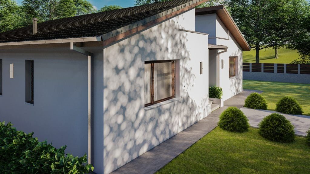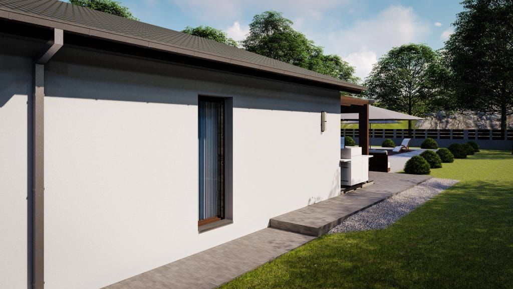 Tatabánya 133 m²-es családi ház típusterv háztervünknettó 109 m2 lakóterületet kínál jövőbeni tulajdonosainak, ami 5 szobát és 1 fürdőszobát foglal magába.