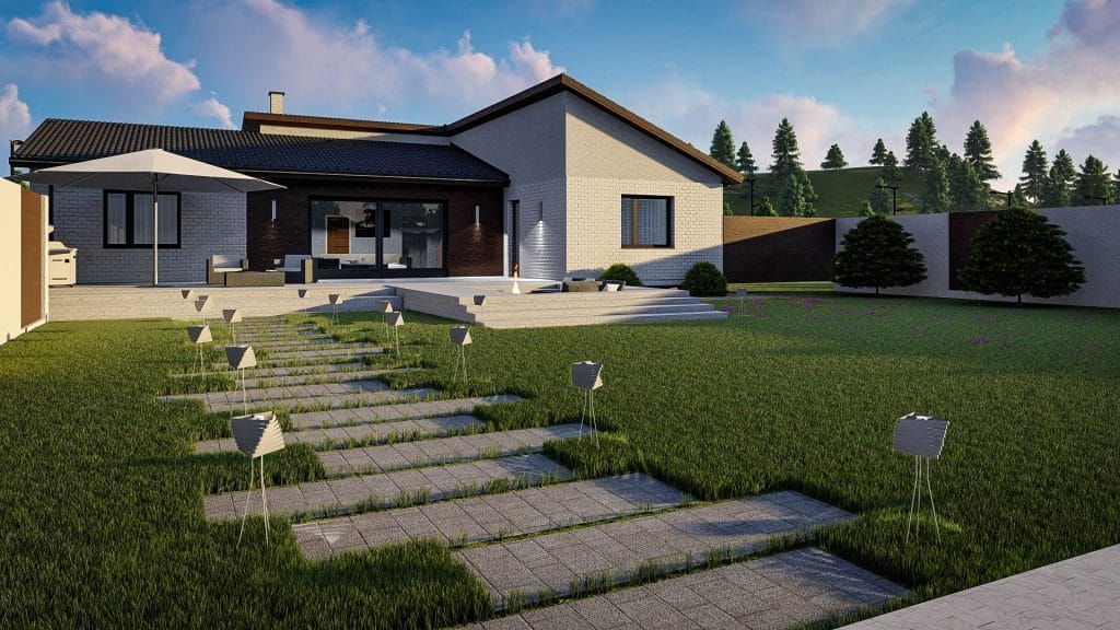 Földeák 180 m²-es családi ház típusterv, nettó 145 m2 lakóterületet kínál jövőbeni tulajdonosainak, ami 4 szobát és 2 fürdőszobát foglal magába.