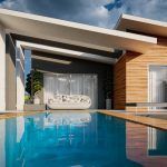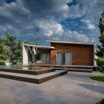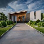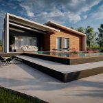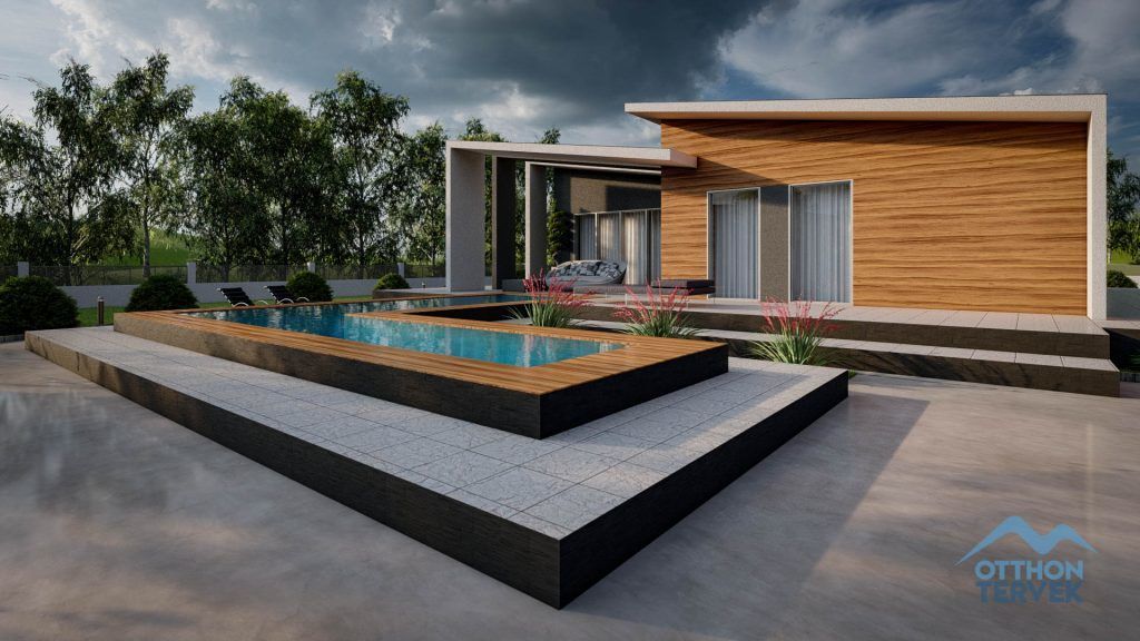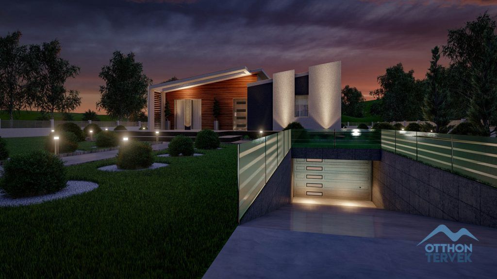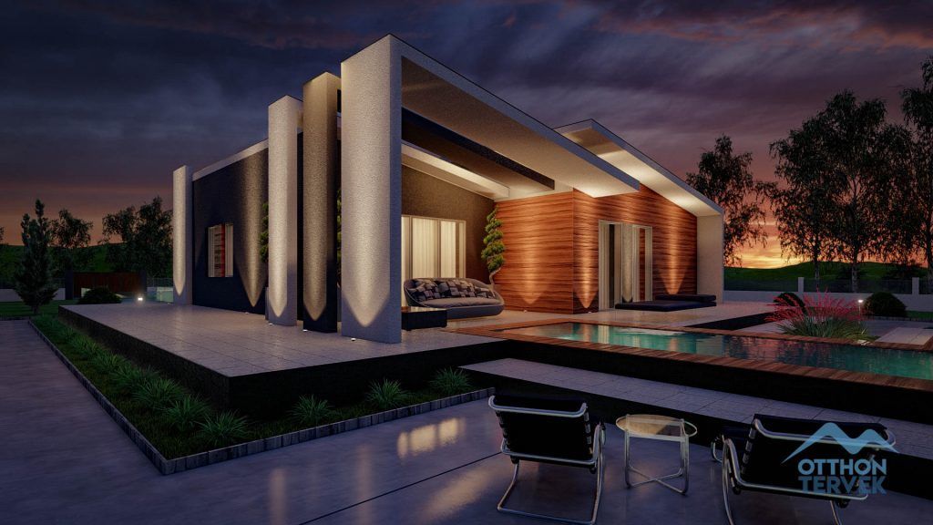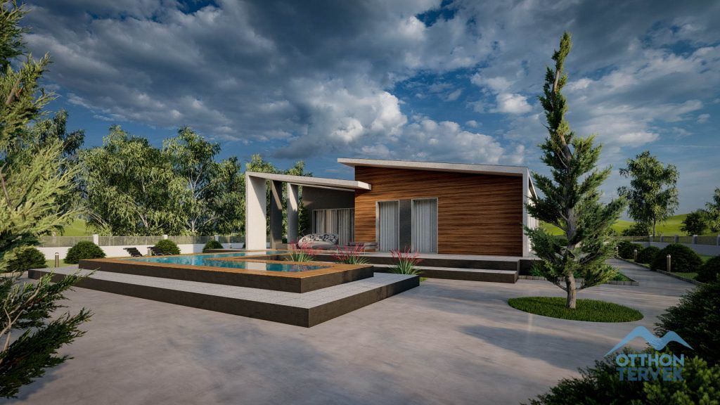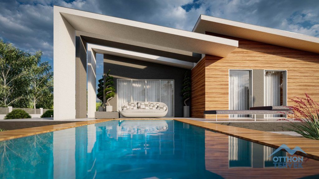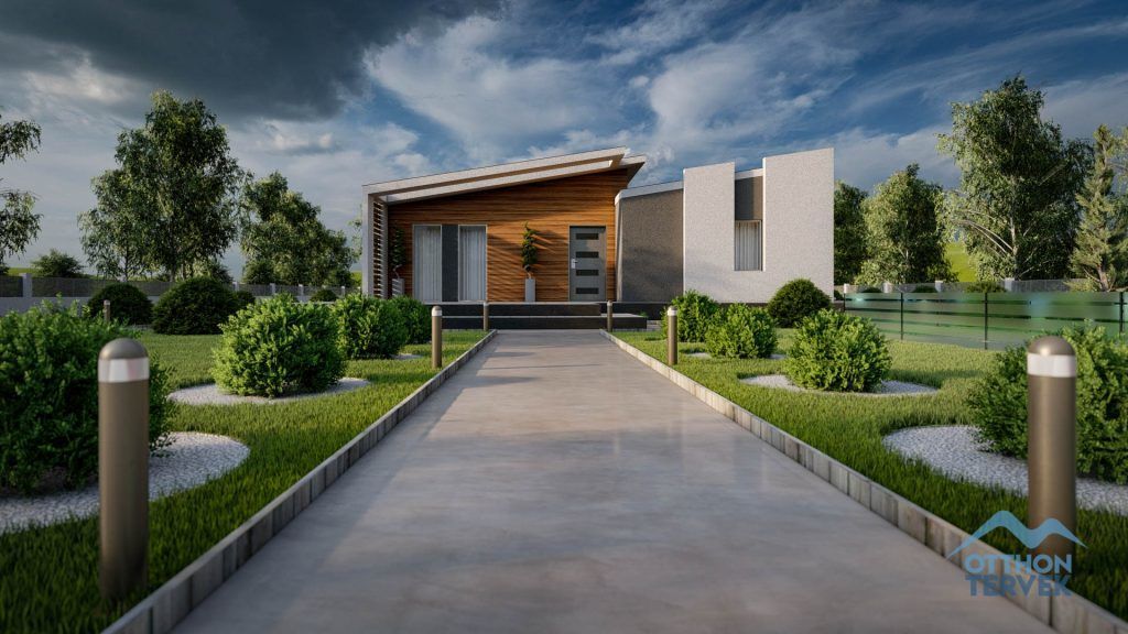 A terasz fedése igazi minimalista megjelenést biztosít a családi ház számára.