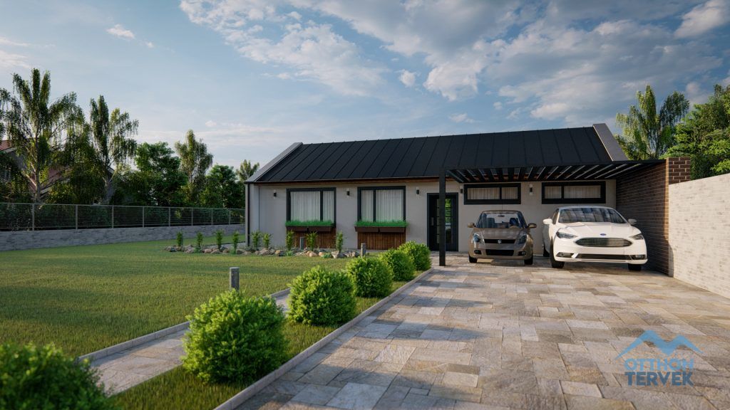 A gépkocsi beálló opcionálisan megvalósítható az épülettől független szerkezettel, így az később is elkészíthető.