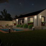 A szülői hálóból külön fürdőszoba is nyílik, így teljesen privát részt alkottunk a szülők számára. Különálló háztartási helyiségben kerülnek elhelyezésre a gépészeti berendezések és a mosógép. A gyermek szobából kettő darabot terveztünk a házba, úgy, hogy a nappalitól ezt a részt elszeparáltuk, igény esetén egy ajtót a közlekedő részre is lehet szerelni, így a gyerekek is elkülönül a nappali tértől, mely a tanulást vagy az alvást is nyugodtabbá teheti.
